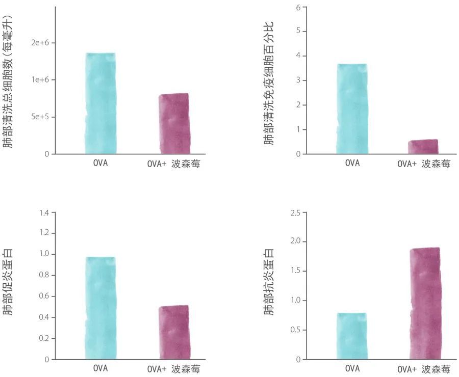 在(zài)長(cháng)期接觸抗原(OVA)下的(de)肺部組織,對比有波森莓和無波森莓影響下的(de)區(qū)别。